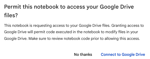 HWBや授業の教材では,ノートブックを信用して,1つめの確認画面では Connect to Google Drive を選択して先に進めてください.