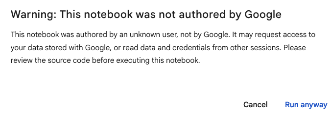初めての接続では色々警告が出ます. Colab のノートブックによっては,誤操作で Google drive 内のファイルが消えてしまうこともあるためです.