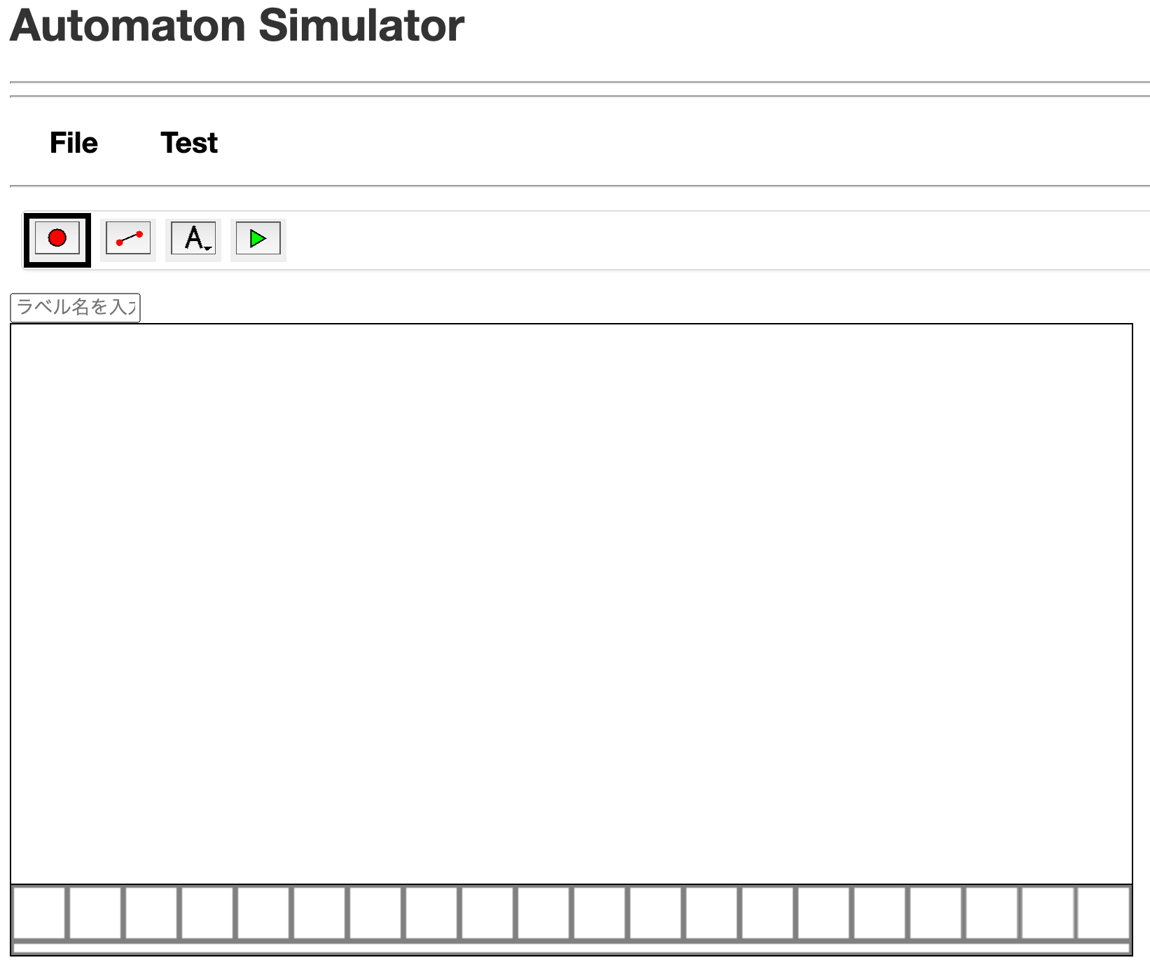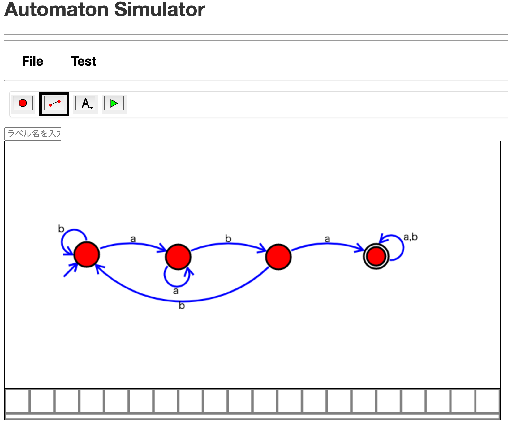 左上のラベル領域にオートマトンの名称を記入できます(ただし,この名称は保存されないようです).