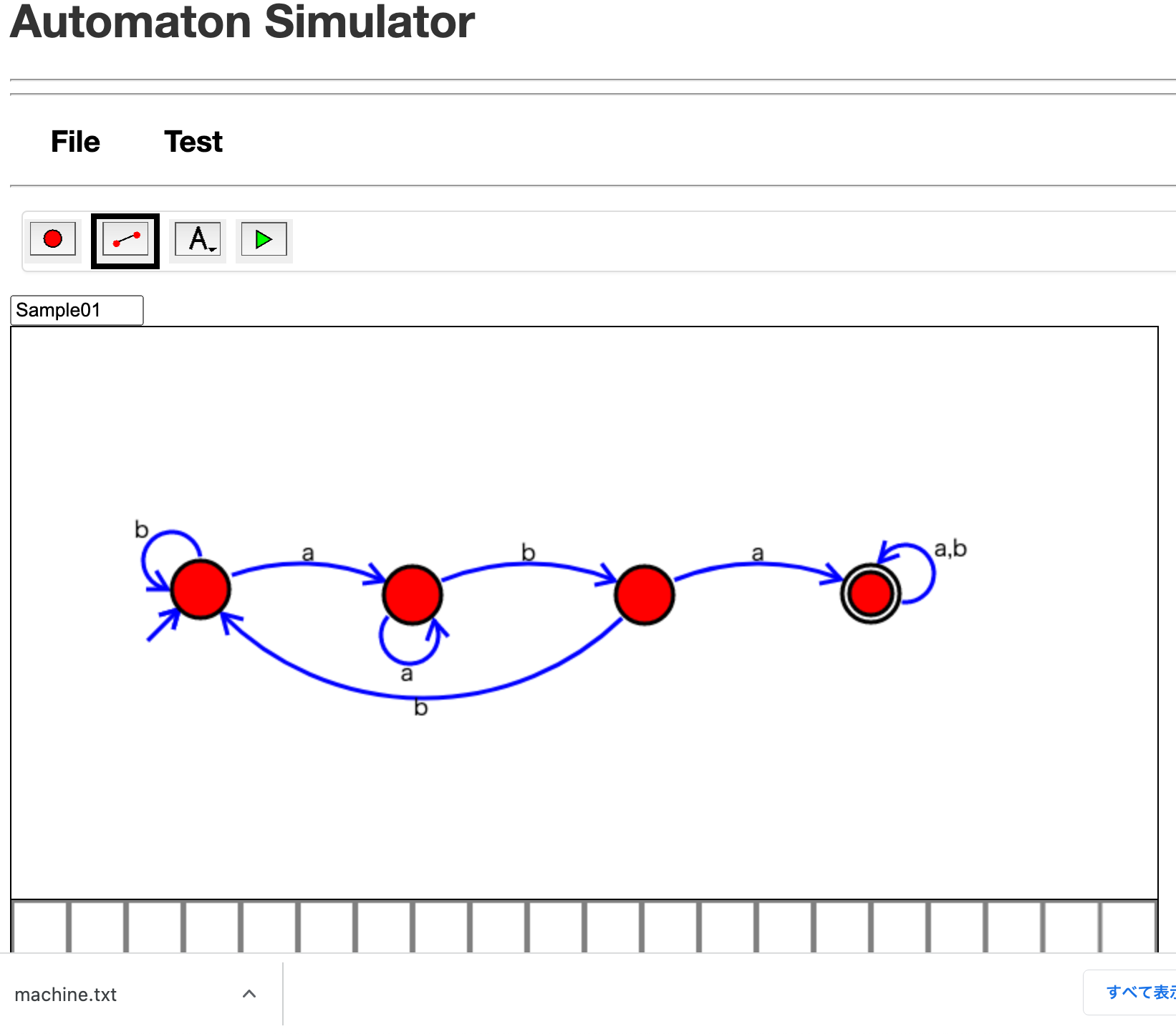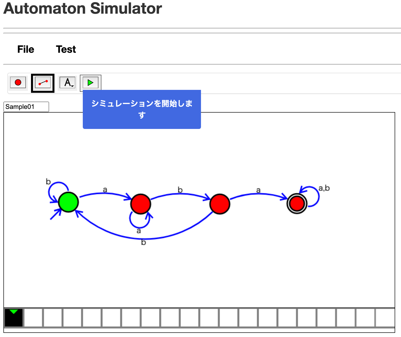 以下のリンクをクリックし,オートマトンシミュレータを起動してみましょう.