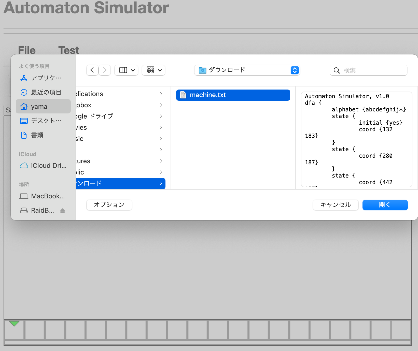保存したオートマトンは,メニューの「Open」によって開くことが出来ます.