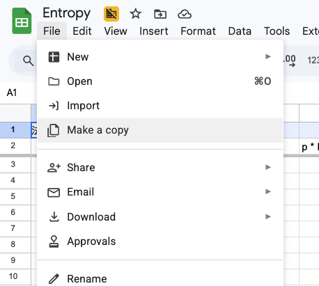 Google sheet: Entropy開いたファイルは,読み込み専用なので,複製して自分用のファイルを作ってください.