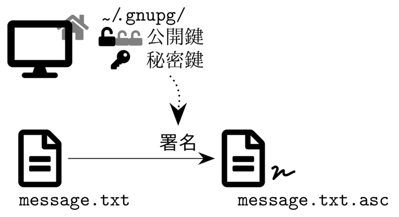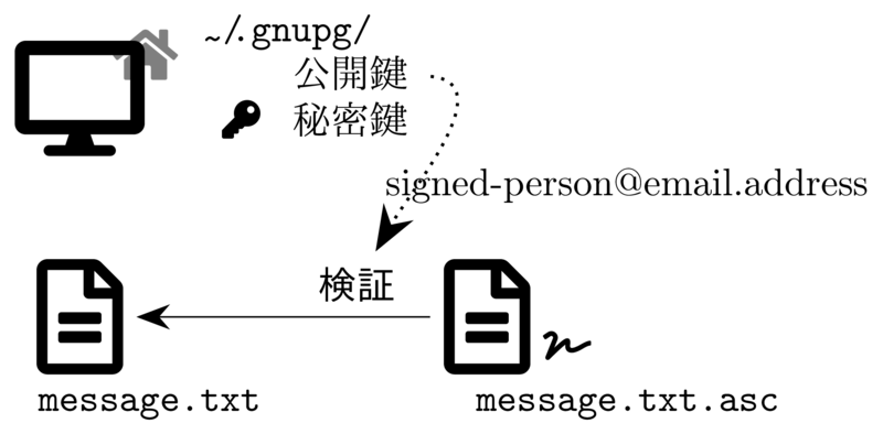 電子署名の検証には gpg --verify とします.