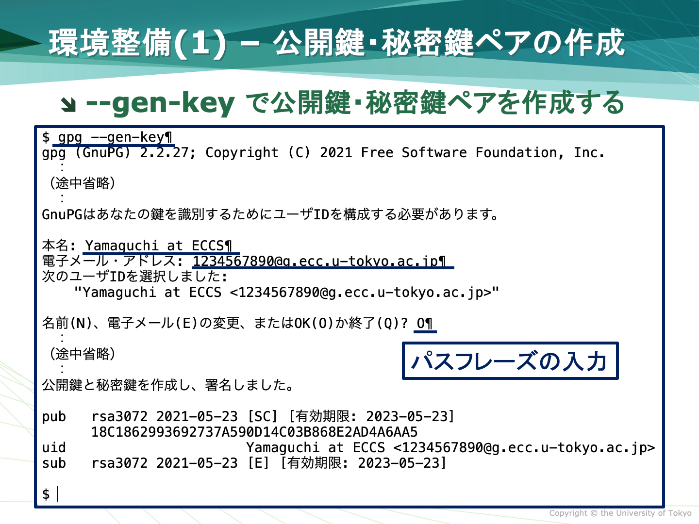 パスフレーズがいります: (自分のメールアドレス)
