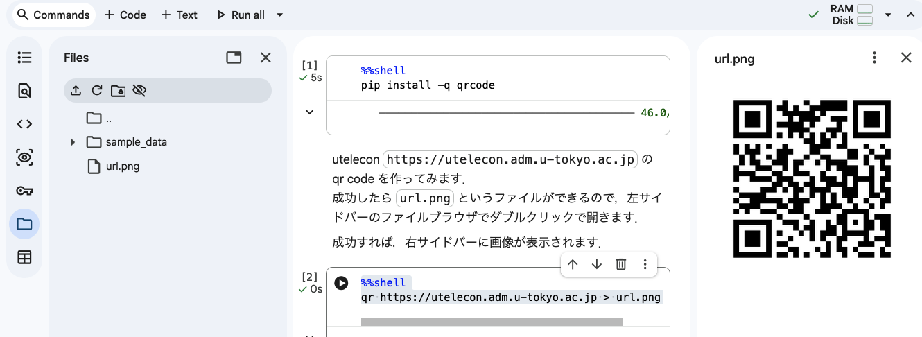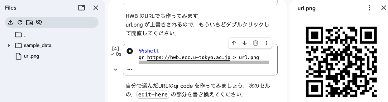 qr https://hwb.ecc.u-tokyo.ac.jp > url.pngセルを実行すると,url.png が新しい内容に書き換わります.