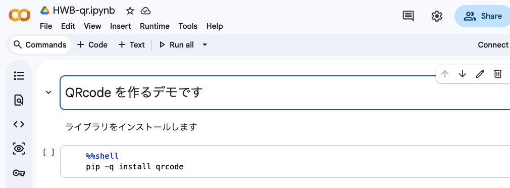HWB-qr.ipynb先頭にあるセルを実行してください.必要なライブラリをインストールします.